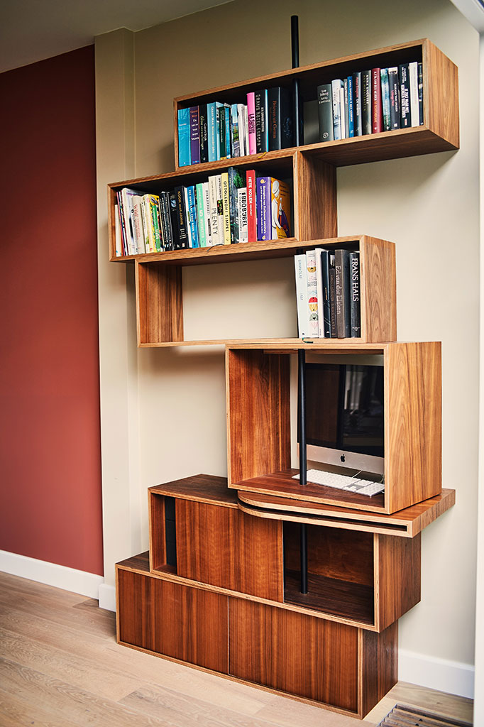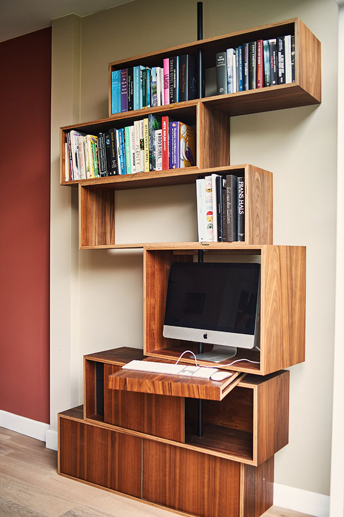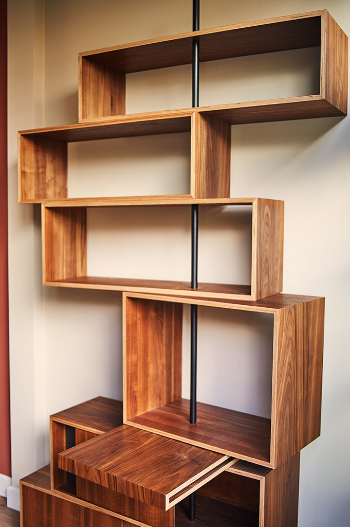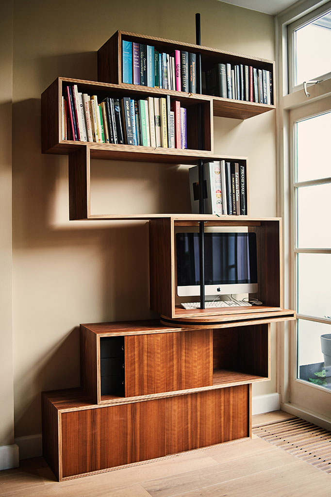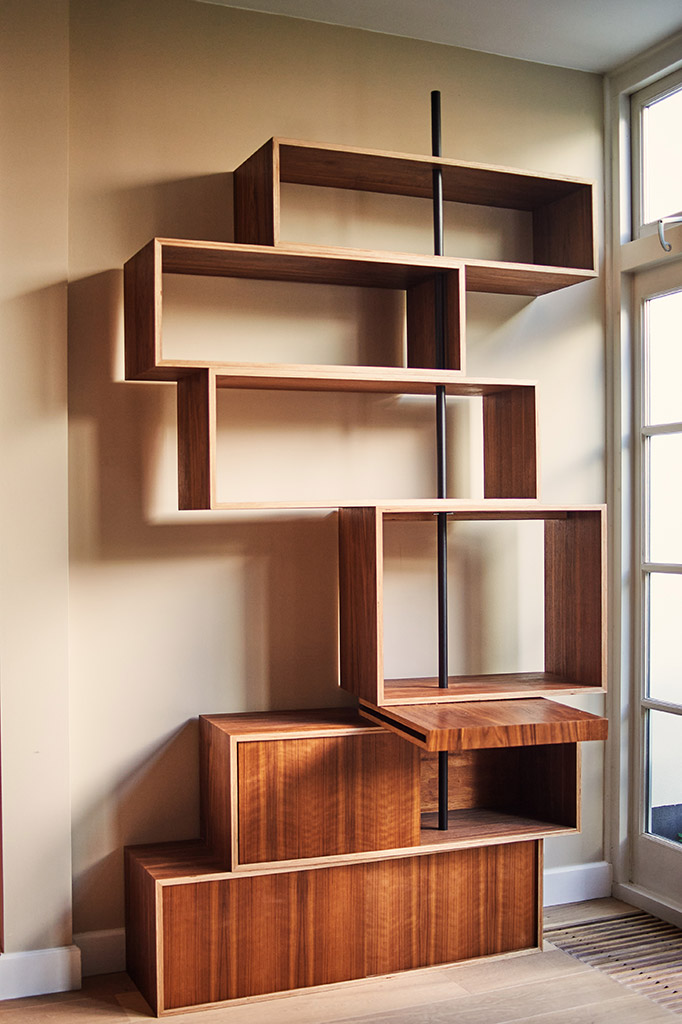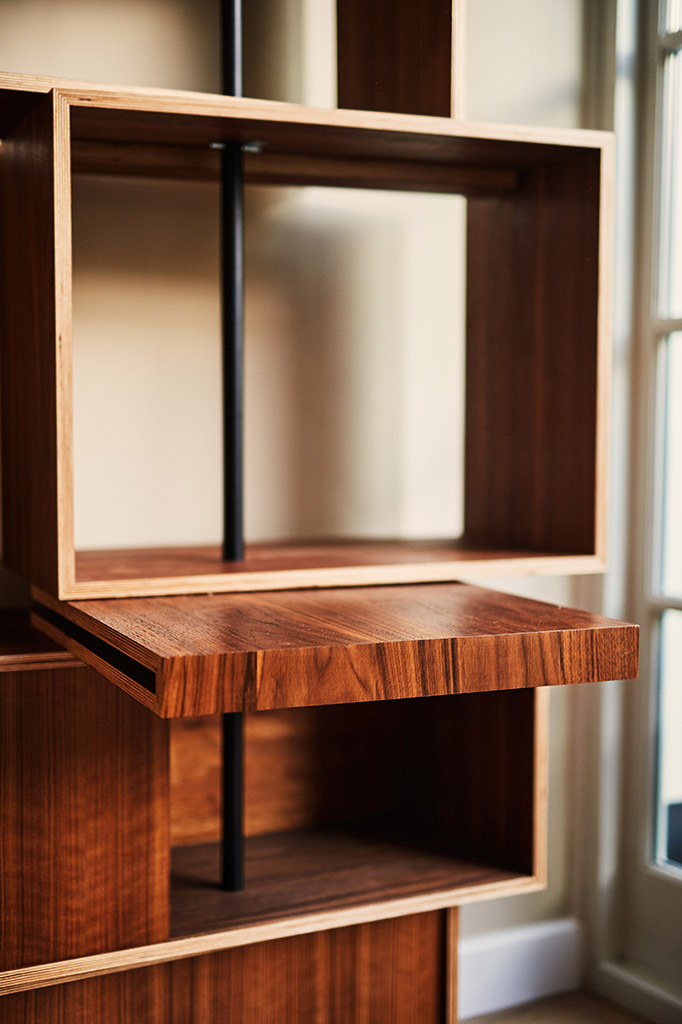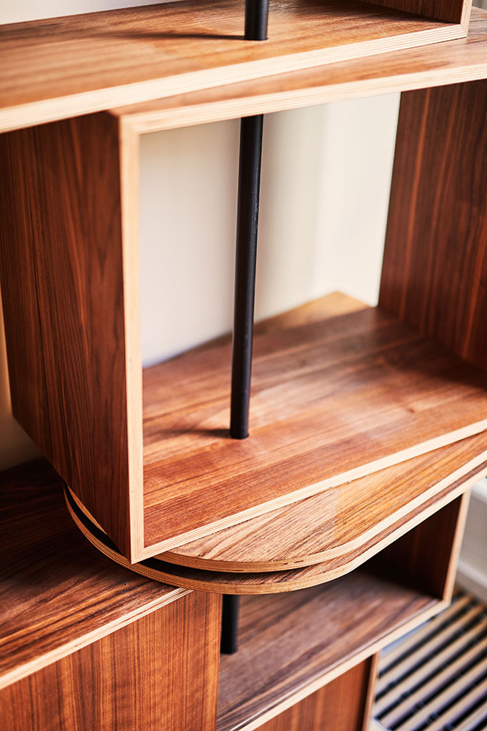 Boxes and in this case, a table top. Both from birch plywood and walnut veneer. Anything that rotates around a pole fits in this concept. Nothing more.